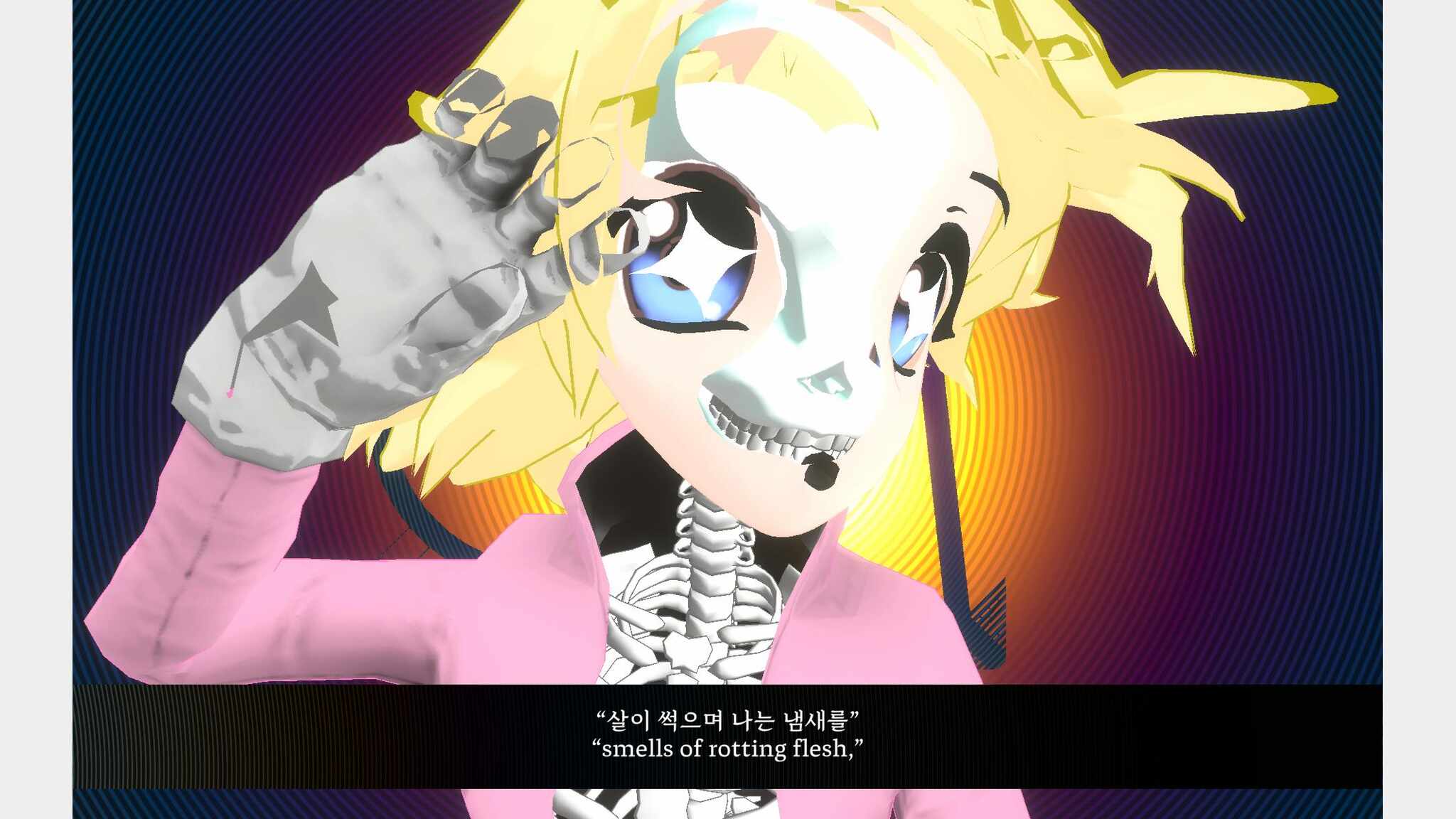 “Bishoujo does not incarnate” explores how the body representation of 3D modeling-based Bishoujo avatars embodies a gendered fantasy about social intimacy and a removable body. This interactive real-time simulation follows the story of the Bishoujo character TEE in a desolate VR chat world abandoned by its users, letting the players interact with the physical interface corresponding with Bishoujo’s weightless organs. This project adopts the point-and-click and rhythm game to give itself a retrospective and subcultural atmosphere. In-game conversations between TEE and its identical twins revolve around the materiality of 3D modeling and the historicity of the Bishoujo icon. ‘Wearing’ 3D bishoujo modeling has become one of the most popular self-expressions in the VR chat community, where community members have cultivated subcultural body expressions using diverse technical practices. Bishoujo’s character serves as a ‘cute’ detour that temporarily allows its users to wriggle out of the oppressive gender roles and explore alternative self-images. Moreover, it functions as a social facial mask, a baby schema strategically encouraging to mediate intimate relationships and friendships that were supposed to be unavailable in the ‘real’ world and ‘real’ body. This project focuses on the irony of this virtual body, sometimes described as ‘ideal’ alternatives. 3D modeling created for its sole external presentation in the game engine usually conceals its inner empty spaces, which display itself only when a bug occurs. TEE’s journey through virtual ruins develops a metaphoric link between the external, wearable, cute surface and the inner concealed vacuum where ‘The real’ resides. By addressing the 3D modeling’s inside voidness visually and interactively, this project leads the players to reenact the vestige of intimate role-playing and contemplate the inverted wish for the removable flesh.