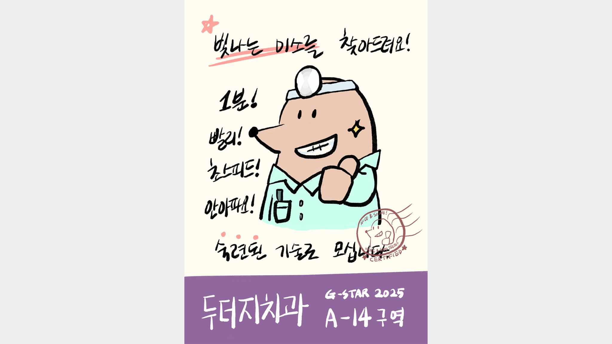 “Dr. Durge’s Dental Clinic” is a playful reinterpretation of our most primal fear of the dentist—retold with wit, charm, and cuteness. Dr. Durge, a dentist who happens to be an animal and has long faced discrimination because of it, teams up with the inventor Dr. Weezle, who once overcame similar prejudice. After being accidentally shrunk by a ray gun, Dr. Durge embarks on house calls of a very unusual kind—traveling straight into patients’ mouths. Inside, dental problems are solved in the most unexpected ways:mining plaque with a pickaxe, pulling teeth with ropes, and drilling cavities like an adventurer on a mission. Outside the mouth, there’s just as much growing to do. Dr. Durge upgrades a windowless semi-basement dental office, improves treatment tools, and slowly grows—both personally and professionally—through an evolving relationship with Mr. Bear, the owner of a cozy neighborhood general store. First showcased at G-STAR, South Korea’s largest game exhibition, Dr. Durge’s Dental Clinic has since been featured in three exhibitions. With a full release planned for this year, the game will continue its journey across festivals around the world. Our goal is simple yet ambitious:to become a dental clinic loved not only by children everywhere who fear the dentist—but even by the most nervous grown-ups, too.