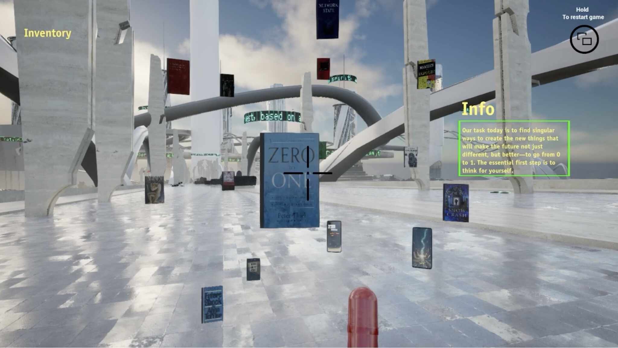 Everything Is Computer is a “game essay” set in the aftermath of a Thielian apocalypse, where a Superintelligence AGI cult has drained humanity’s life force, leaving behind the spectral ruins of startup dreams. The game repurposes texts, tweets, and interviews from Silicon Valley’s techno-libertarian prophets as mythological debris, forming a nonlinear narrative about the collapse of futurist promises.