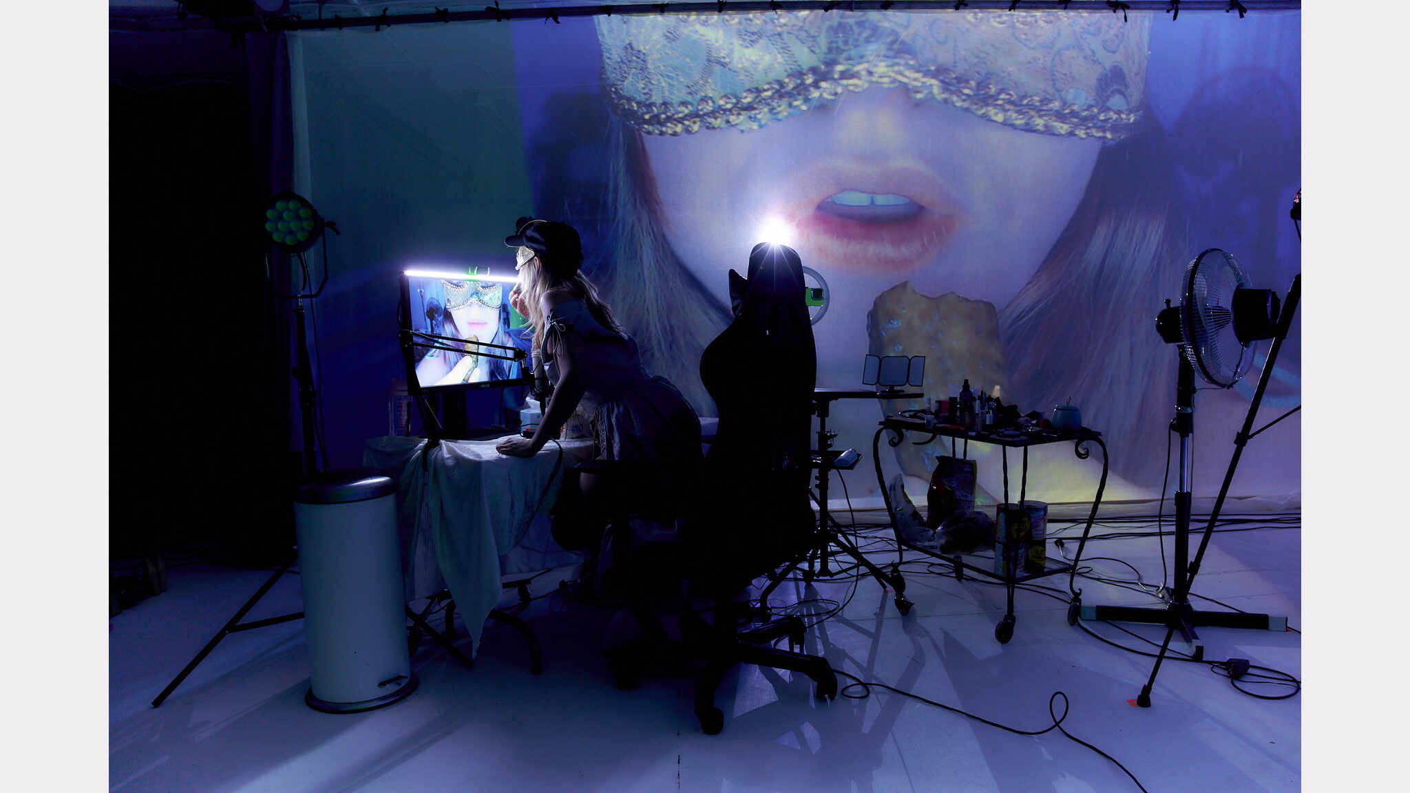 Exhibition is a hybrid project combining live performance and video game, where the audience directly shapes the image and destiny of a Twitch streamer in real time. Between stage and streaming, reality and virtuality, the work explores the gamification of social relationships and self-presentation in the age of digital platforms.