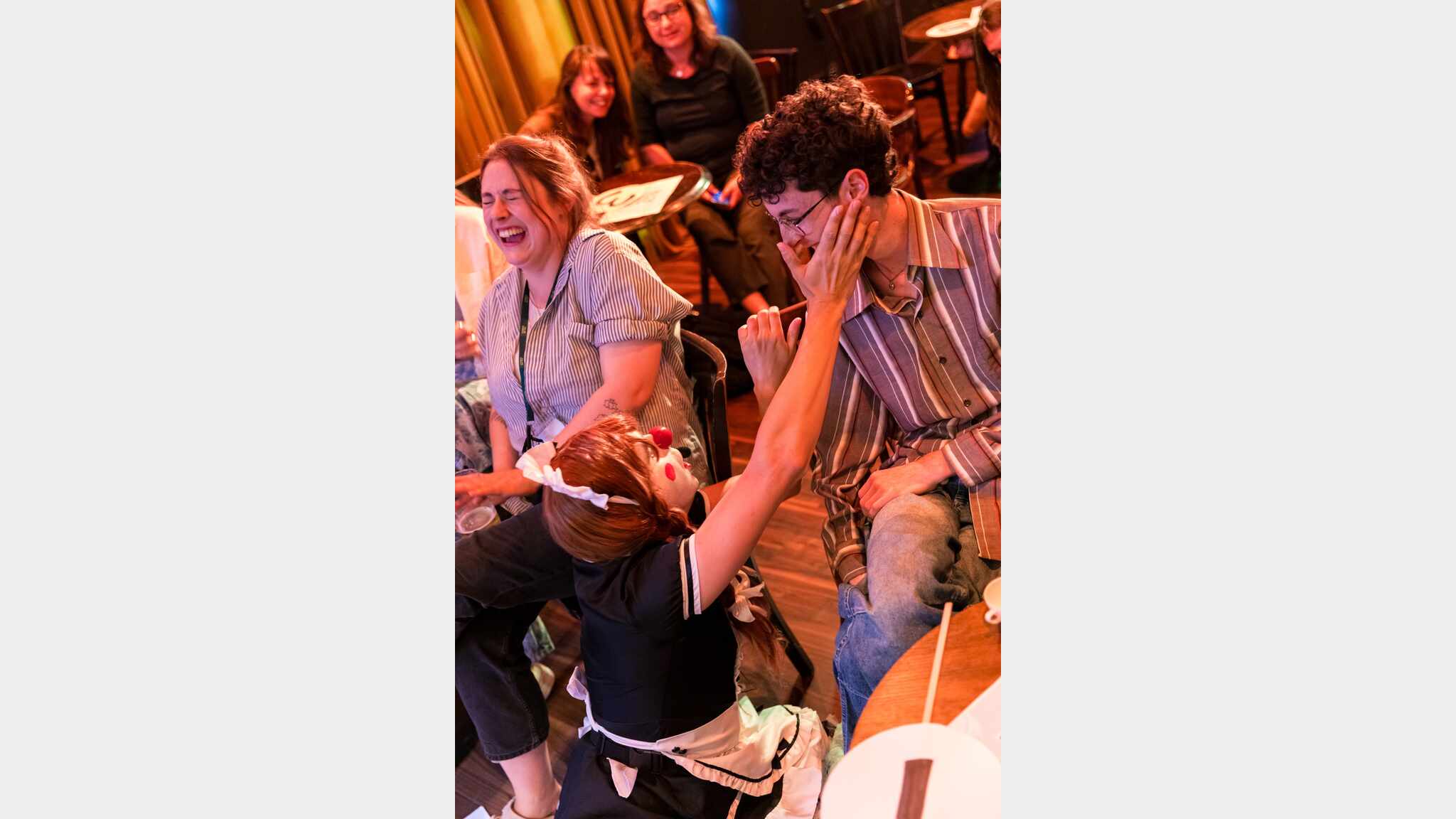 Lovestruck clown Cafetière meets the man of her dreams, Hollywood legend Pierce Brosnan. There’s just one catch: Pierce Brosnan is a talking dummy controlled by the audience, and whatever you type into your phones he will say! Wreak romantic havoc in this hi-tech improvised love story guided by you!
