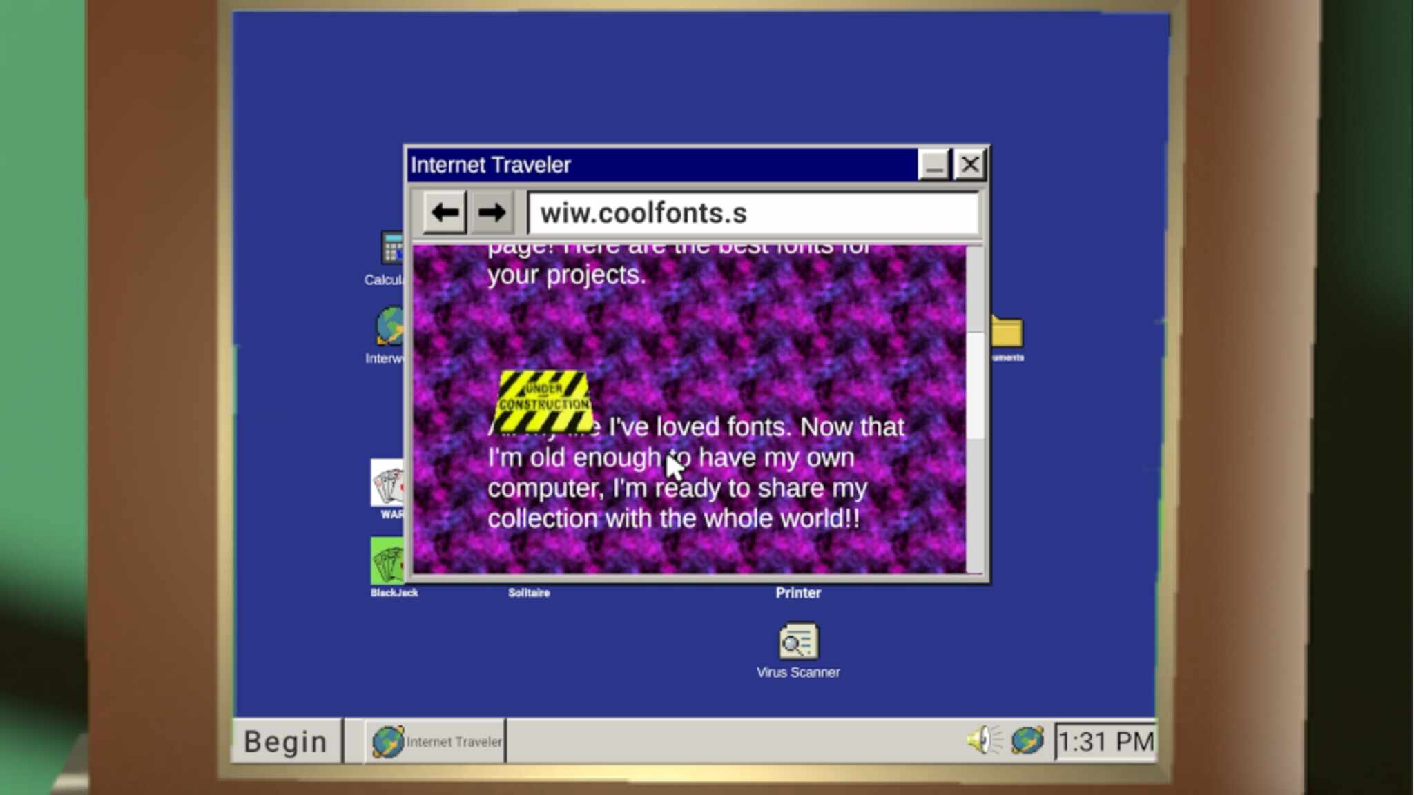 Your parents need to print their boarding passes and race to the airport, but there’s one problem… their printer driver is missing! As their very, very patient child, it is your duty to navigate an OS, internet, and series of malicious viruses from the early 2000s, and find a way to get that printer printing! I made this because it was a silly idea that popped into my head. And it has evolved into an homage and love letter to early 2000s webpages and OS UIs. It’s dedicated, if you will, to anyone else who was also the only one in their family who somewhat understood technology.
