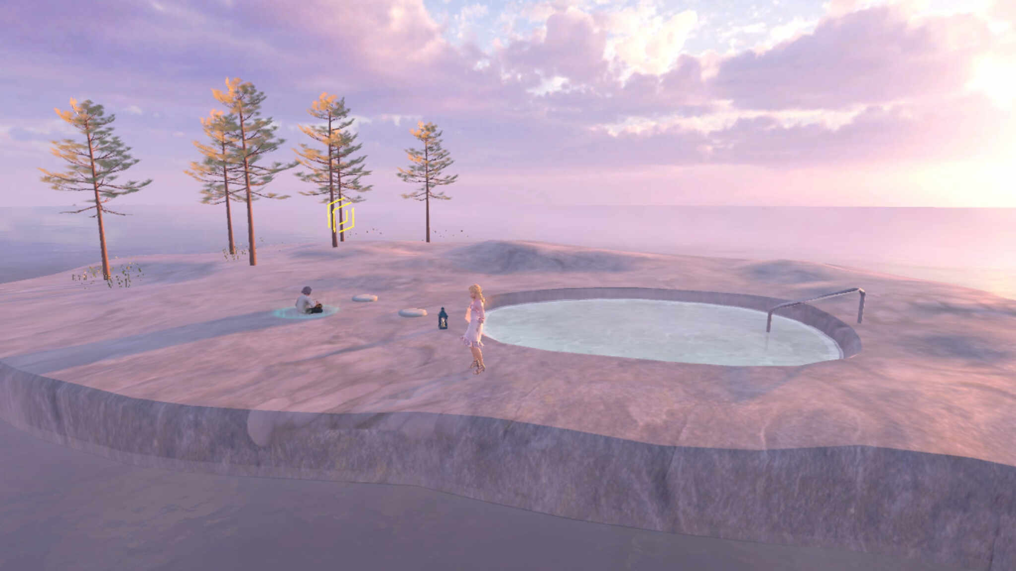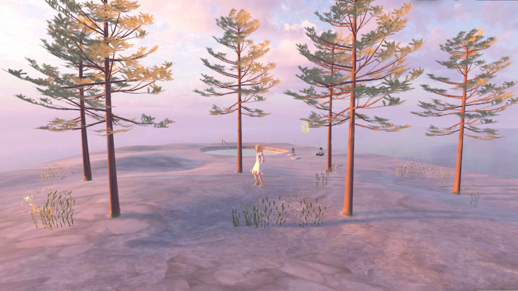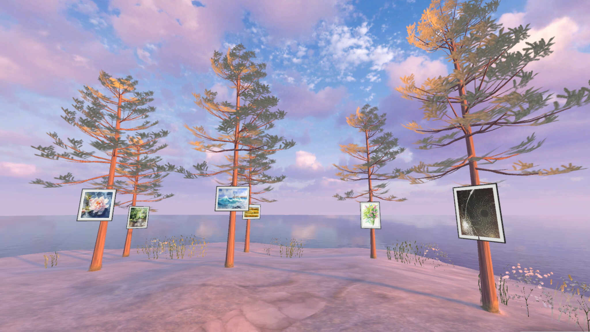 Pink Lake Island — A Walking Sanctuary of Water and Memory is an immersive spatial artwork experienced through a slow walk across a virtual island landscape. Moving between water, trees, and suspended paintings, visitors encounter the works gradually—through rhythm, distance, and gentle shifts of light and atmosphere. Rather than telling a linear story, the space acts as a field of remembrance: water becomes a stabilizing medium, and walking becomes a quiet ritual of attention. The project invites pauses, stillness, and reflection, proposing immersive technology as a form of care—where memory is held not as information, but as embodied presence in time. Built as an artist-led environment, the work merges spatial composition, water-based ambience, and sound-based presence to create a contemplative sanctuary for slowing down and reconnecting.