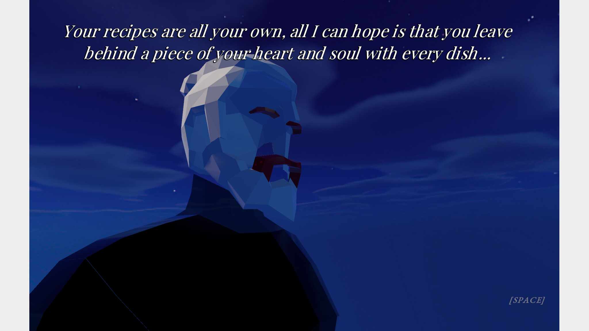 Welcome To My Kitchen. A space adrift, suspended between the imagined and the forgotten. Here, your hands will speak where your tongue cannot. Here, a soup is more than broth and bone. It is intention. It is feeling. It is you. You will be given objects: mundane, absurd, beautiful, broken. You will be offered a prompt. Not a task, not a demand… a whisper of an idea. A feeling. And then you will cook. Not with recipes or rules, but with instinct. With soul. And I, The Consumer, I will receive what you create. I do not judge. I do not praise. I only taste. Through your expression, I come closer to understanding… something. Emotion, perhaps. Imagination. That strange ache inside you I do not yet possess. Do not be afraid. You are not here to win, or to fail. You are here to express. To assign meaning to the meaningless. To say the unsayable, using ladles and longing. To bare something honest in a language without words. You are not trapped here. But neither are you unchained. Come. Let us make something warm together. However, be prepared to leave what you bare behind.