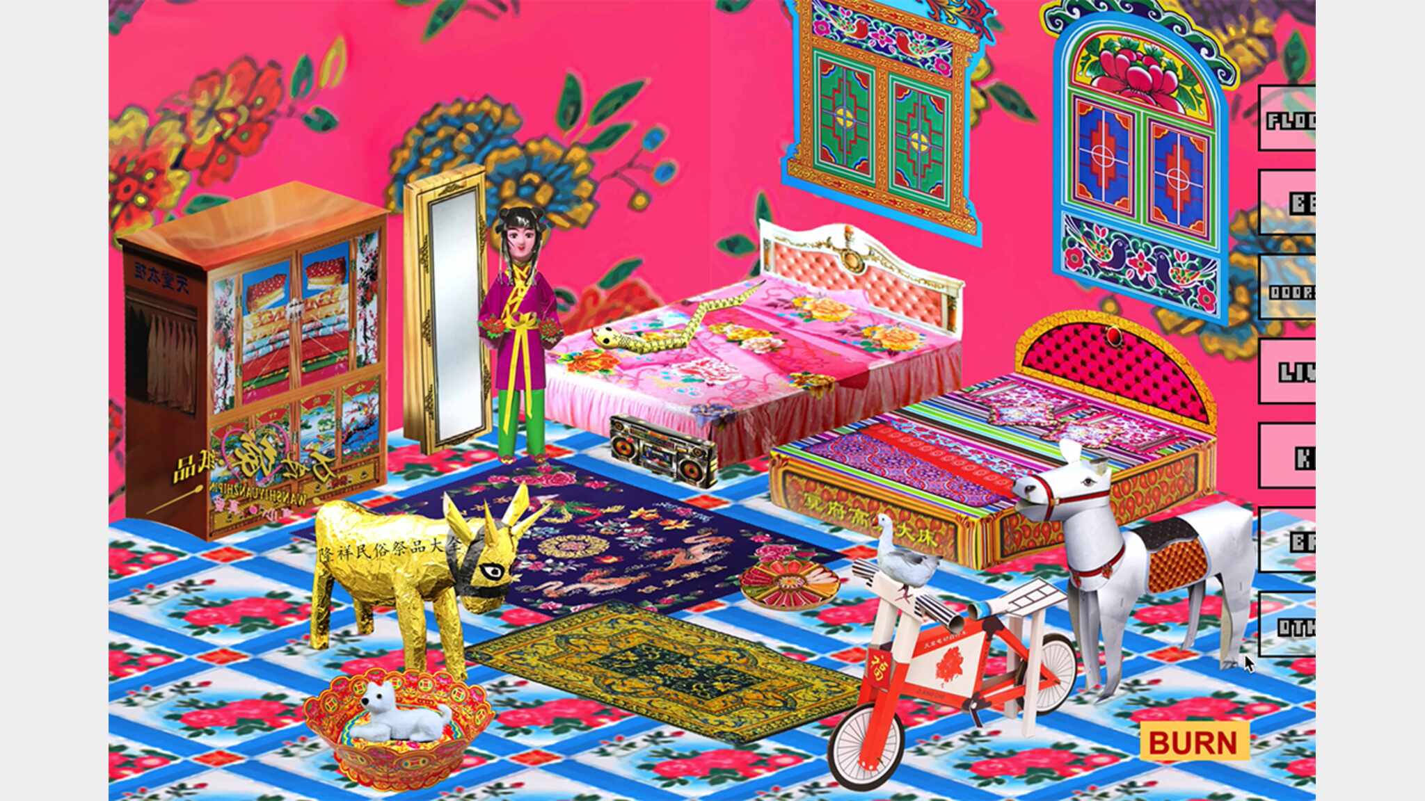 The game was inspired by the ritual on Qingming Festival where Chinese people burn paper-made offerings such as cars, houses, money, and other necessities for their dead relatives in the hope that they could live their afterlife with the lifestyle they used to have. I captured paper-made furniture and other necessities from Chinese online shopping malls and made this drag-and-drop game in which people now get to decorate their dead relative / friend’s afterlife home.