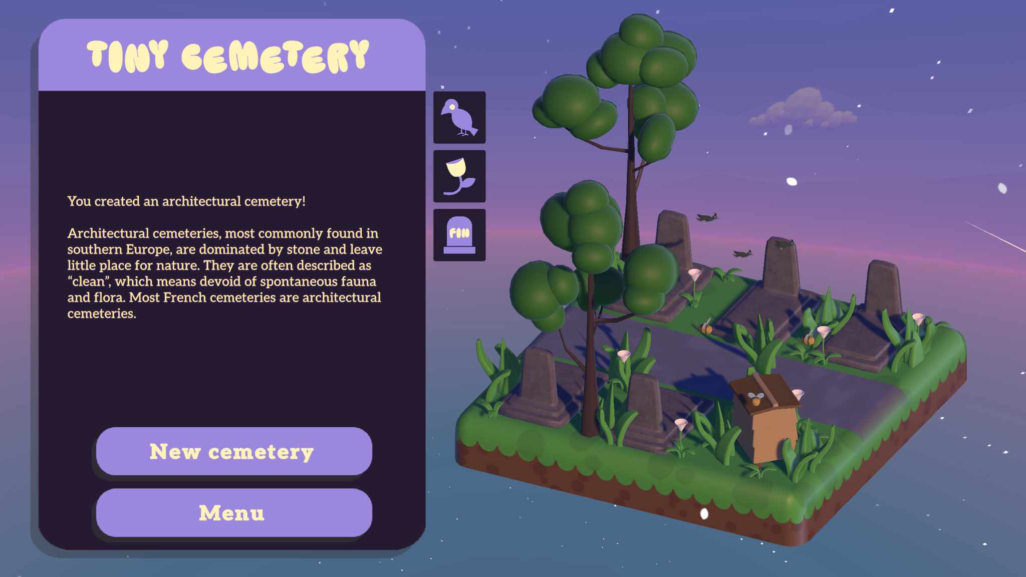 How would you manage a cemetery in the age of environmental sustainability? Take charge of a small town cemetery and answer the visitors’ various requests. Transform the place as you let the grass grow wild or pour concrete all over!